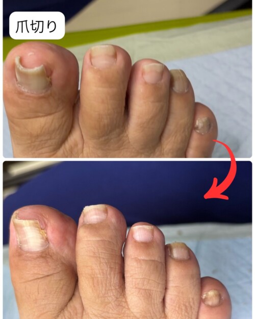 また、腰の痛みなどで手が爪まで伸ばすことができなかったり、体が固かったり、目が見えにくくなったり、、自分でなかなか爪が切れないという方は大勢いるかと思います。
