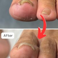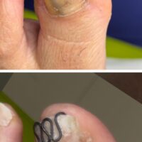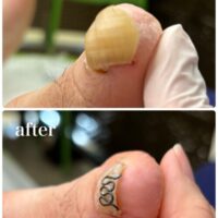 初回の処置後の写真です。 爪が分厚く、曲がり、ちょっと写真では見にくいですが、少し巻いてる状態です 処置後は指に爪が当たっていた痕が見えます(TT) …